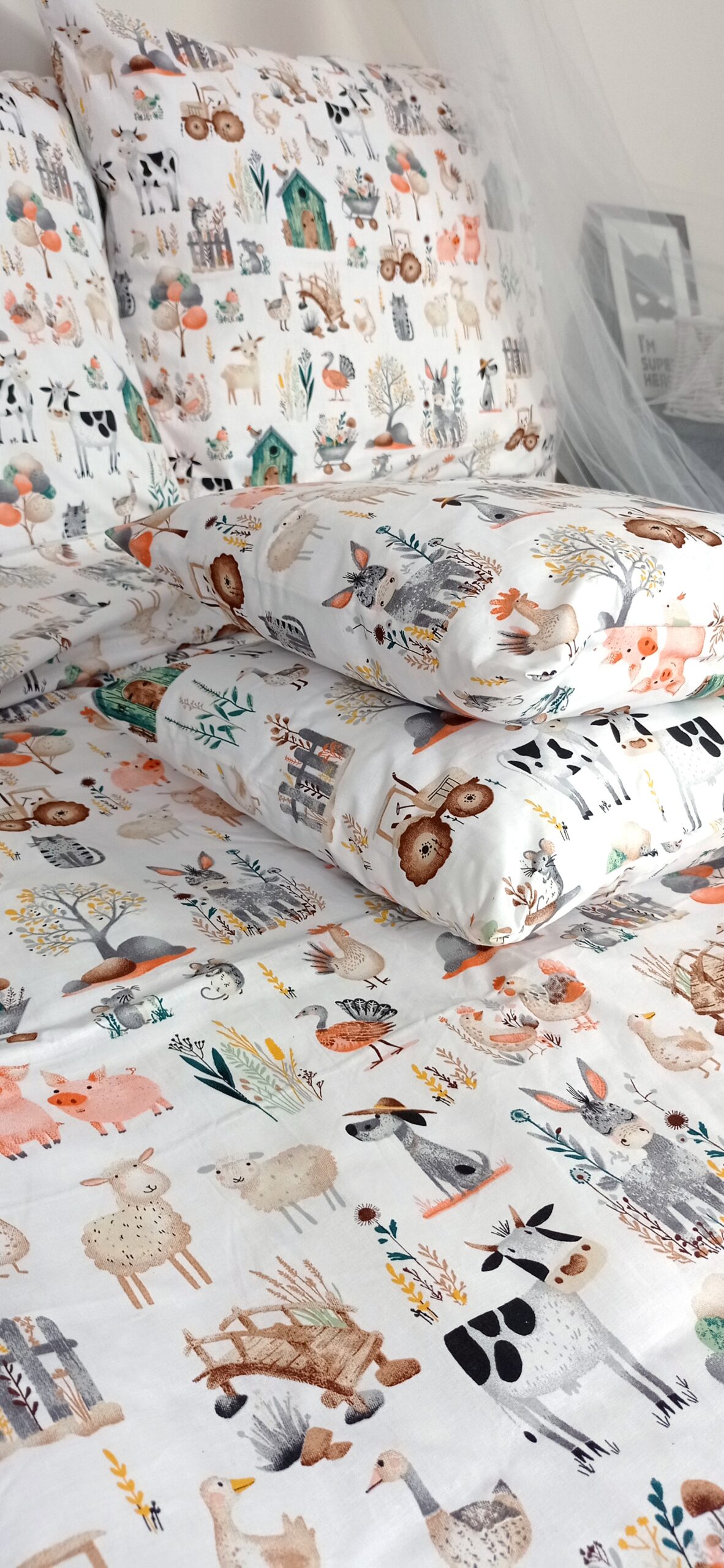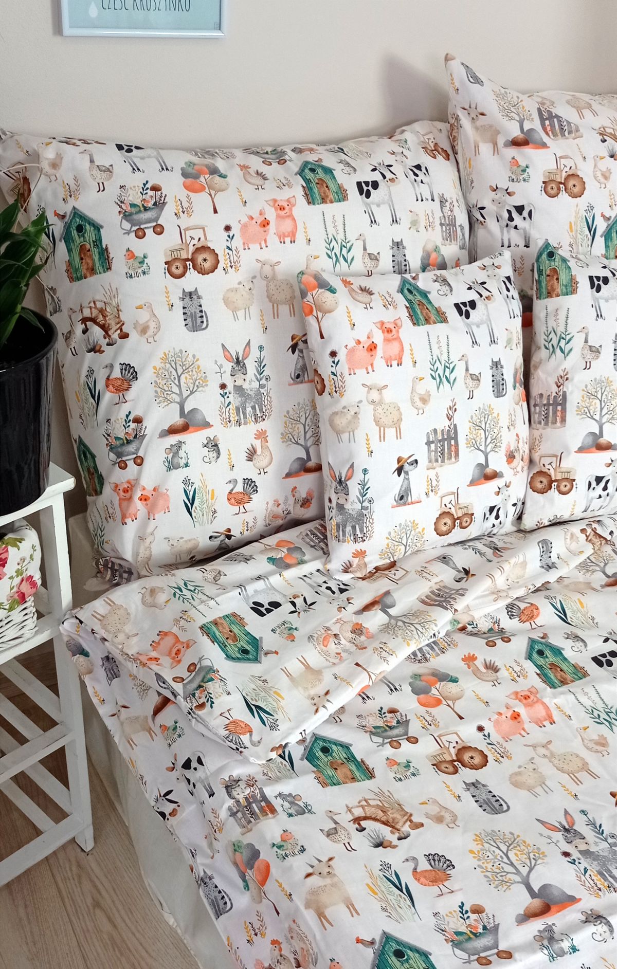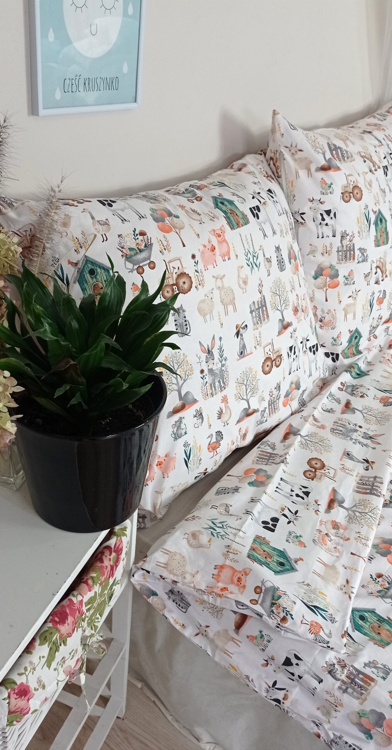 - Do pościeli można dokupić pasujące do niej poszewki na jaśki w rozmiarze 40×40 cm.