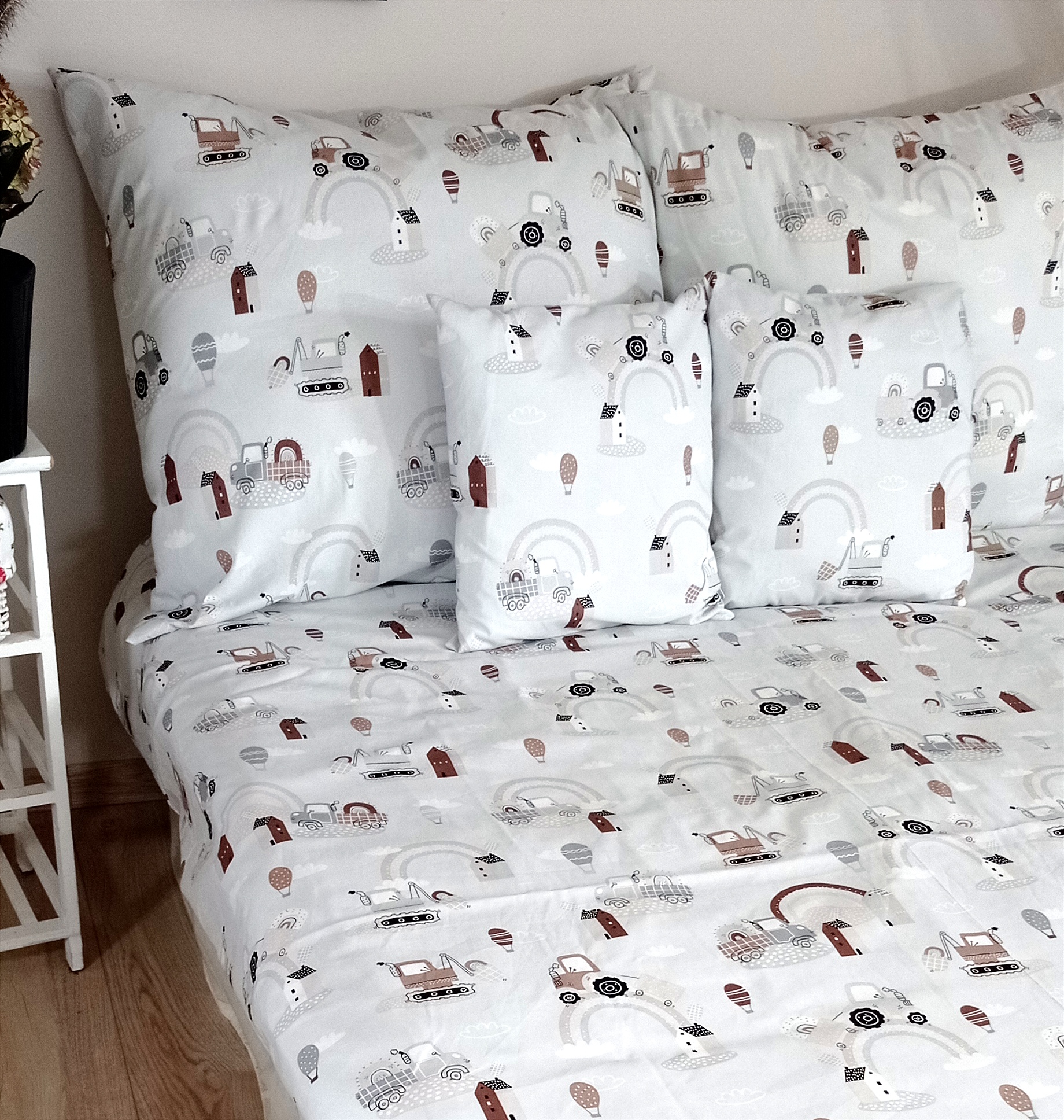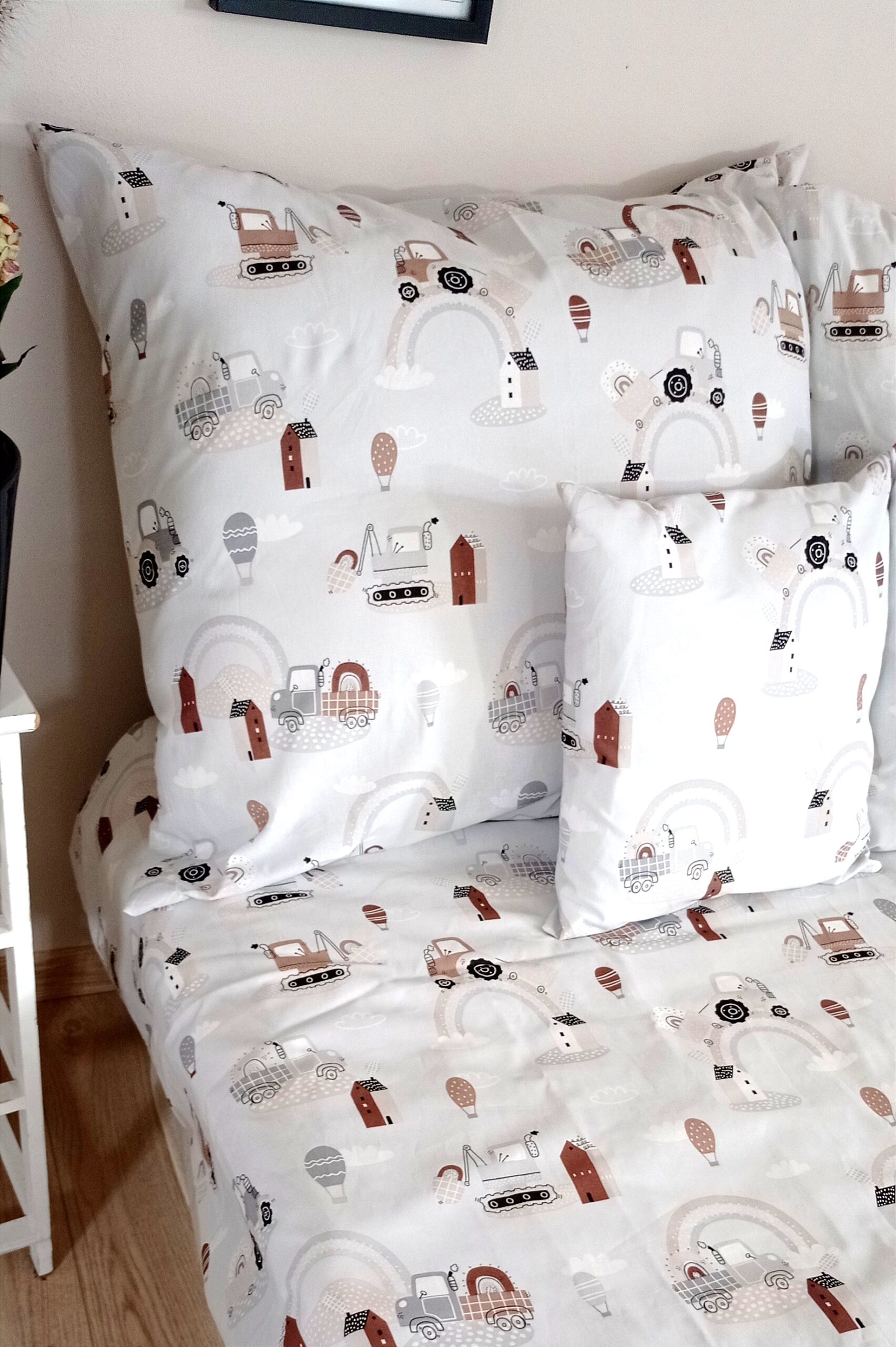 - Do pościeli można dokupić pasujące do niej poszewki na jaśki w rozmiarze 40×40 cm.