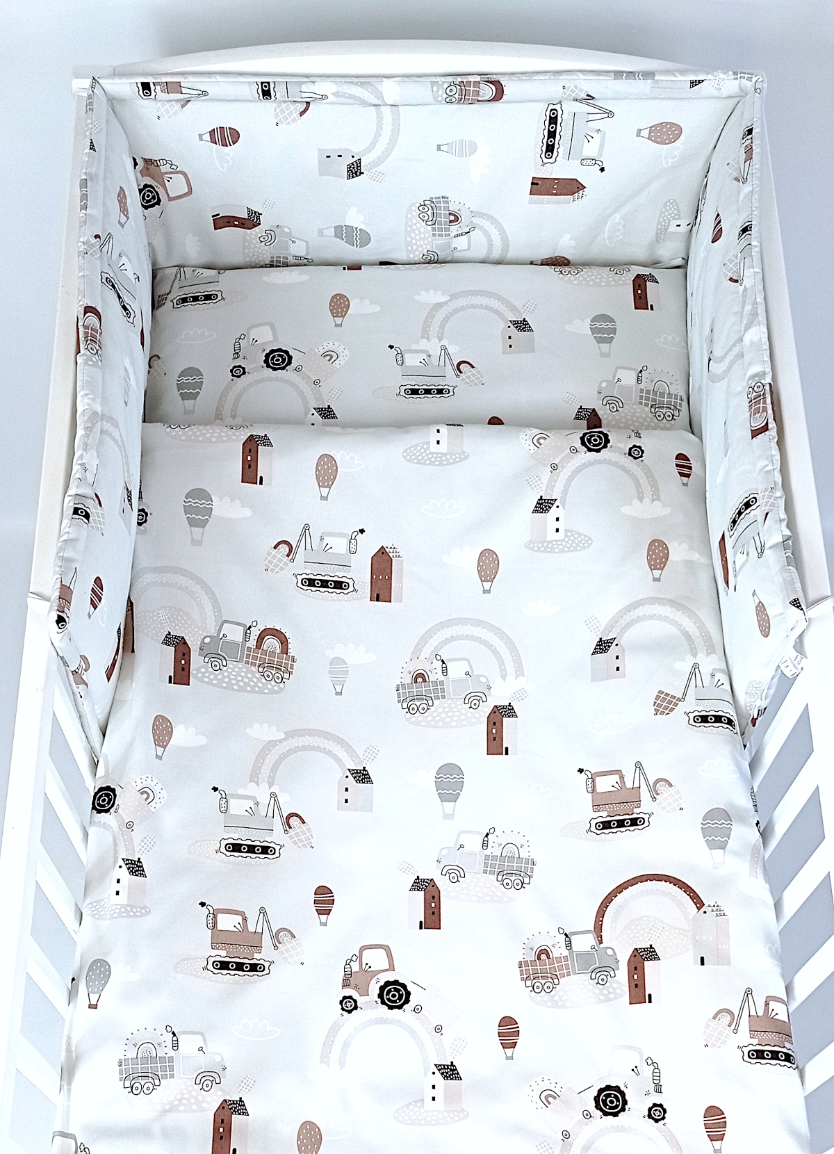 - Ochraniacz posiada 8 długich porządnie przyszytych troczków dzięki którym można go solidnie przytwierdzić do łóżeczka.